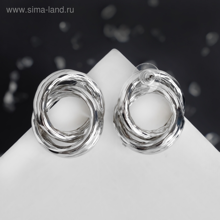 Серьги металл «Геометрия» круги переплетённые, цвет серебро