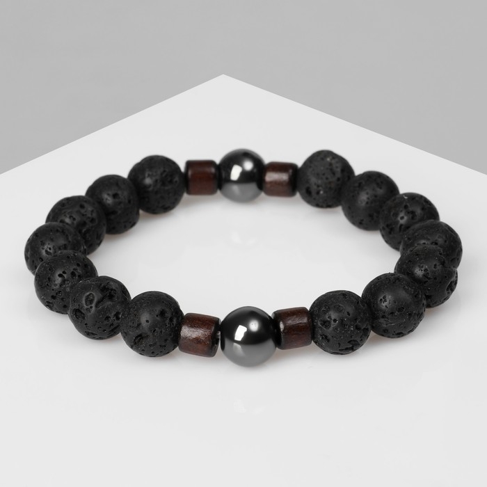 Браслет унисекс «Бастион» лава с деревом, цвет чёрно-коричневый, шар №10, d=6 см