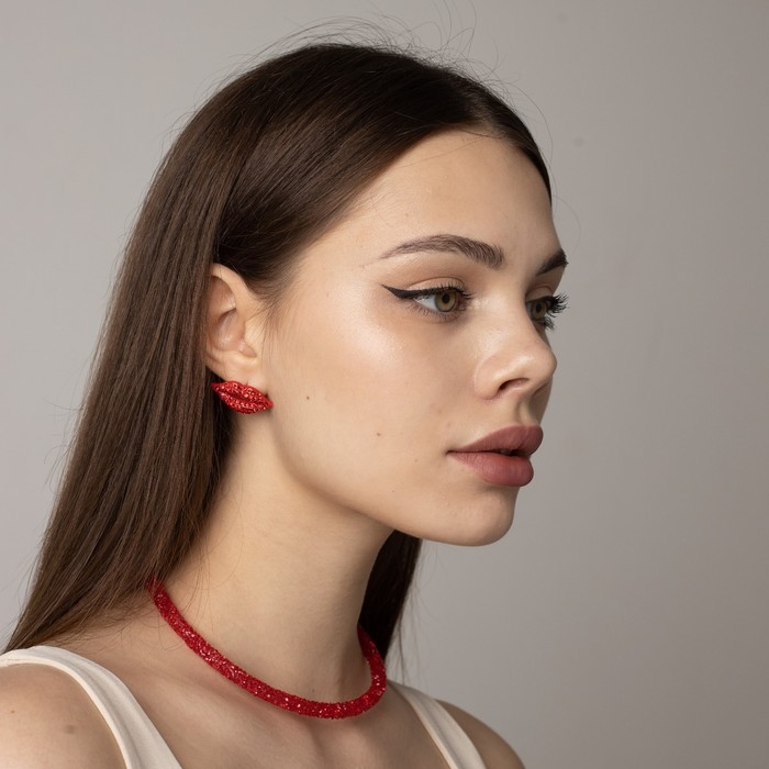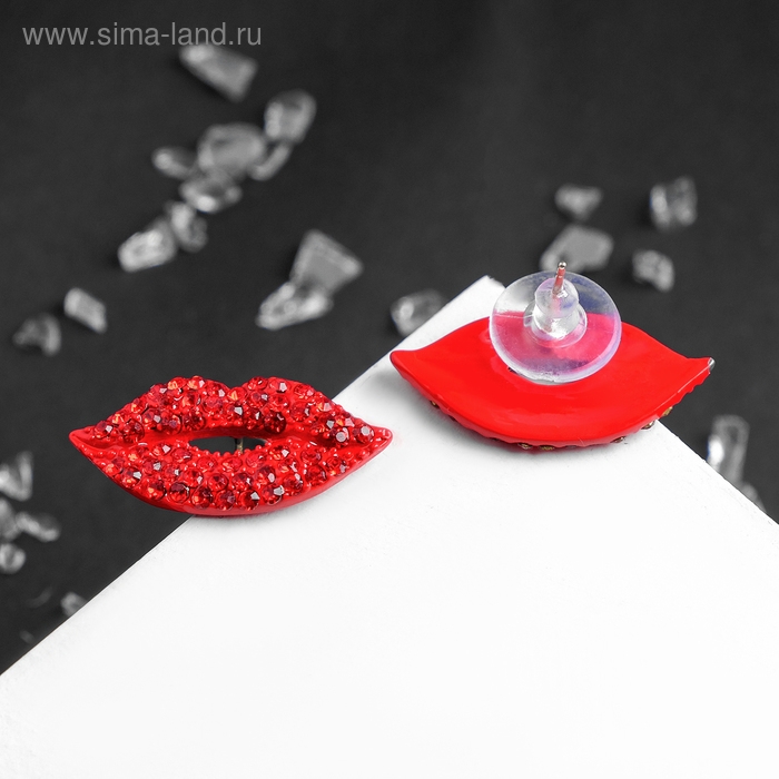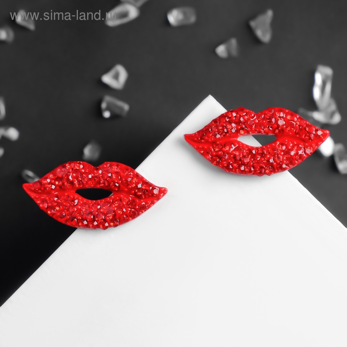 Серьги со стразами «Роли» губы, цвет красный