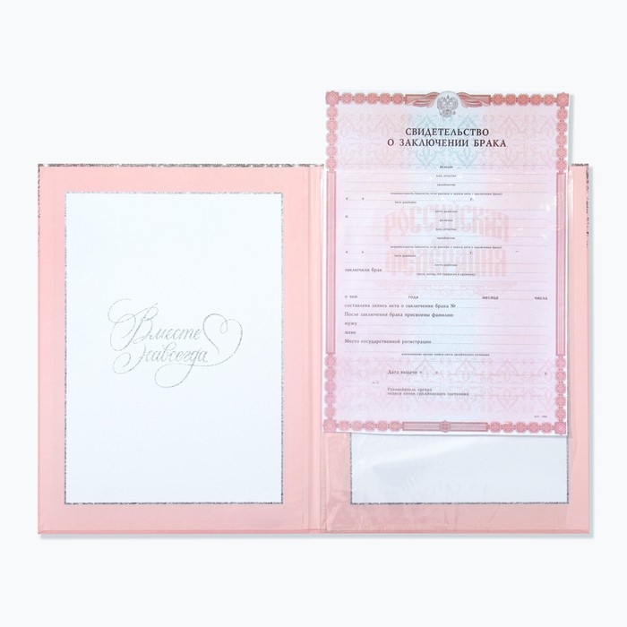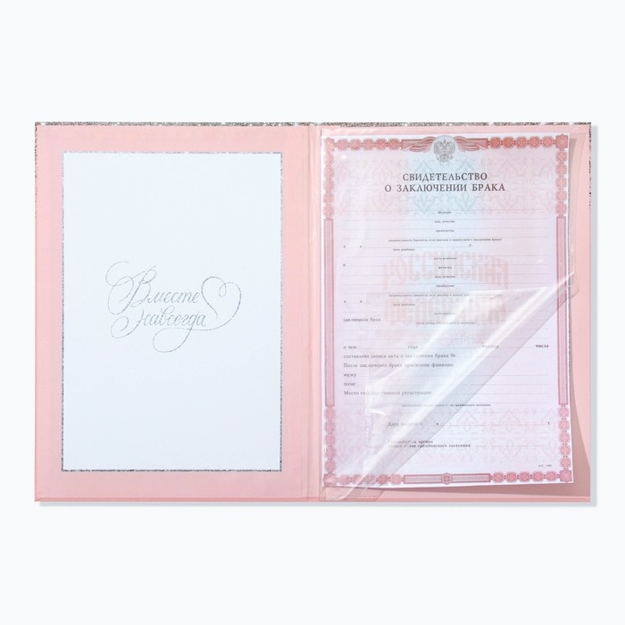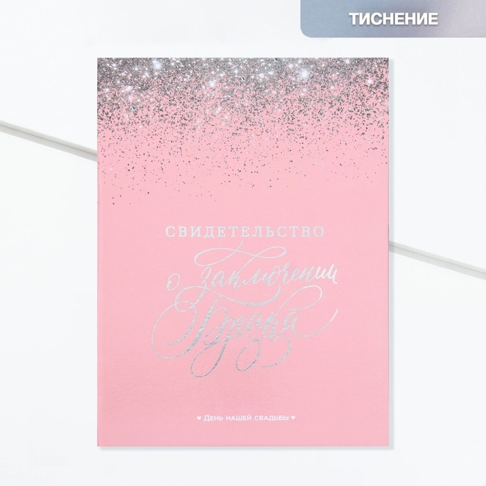 Свидетельство о заключении брака "Розовое с блестками" тиснение, 23,5 х 31,3 см.