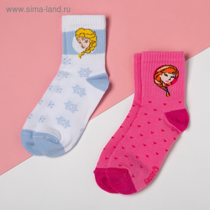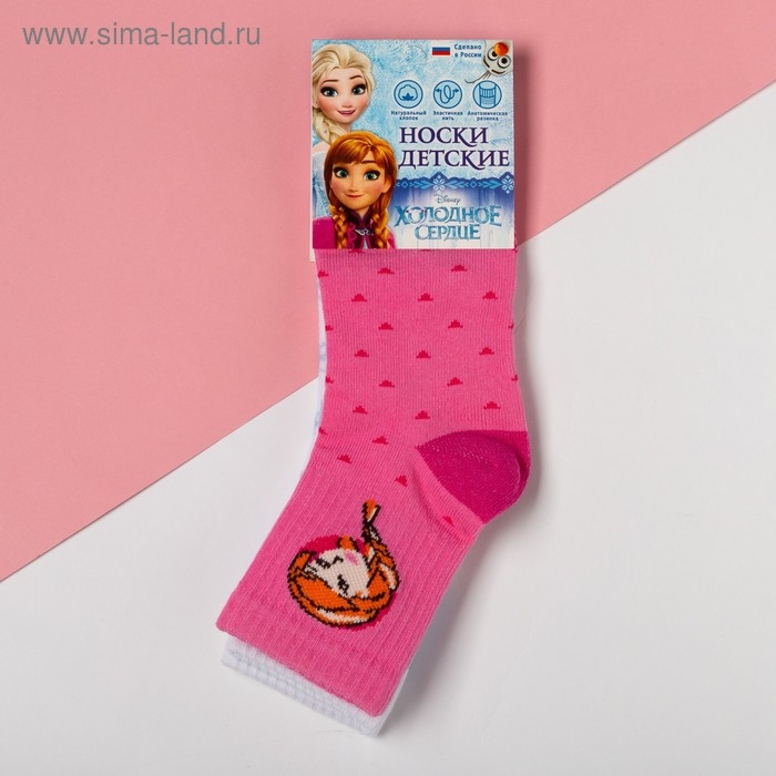 Набор носков "Эльза и Анна", Холодное сердце 2 пары, роз./белый, 18-20 см