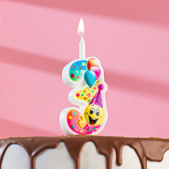 Свеча для торта "Смайлик с шарами", 9,9 см, цифра "3"