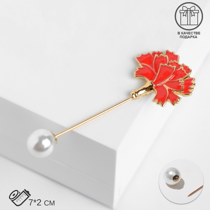 Данная булавка – настоящая находка для модниц, предпочитающих нетривиальные аксессуары. Брошь-булавка станет не только оригинальным дополнением вашего наряда, но и позволит без труда приколоть при необходимости палантин или шейный платок. Используйте её в качестве украшения шляпки, рубашки или галстука. Булавка «Цветок» гвоздика, 7 см, цвет красно-белый в золоте внесёт особую нотку изящности в ваш образ.