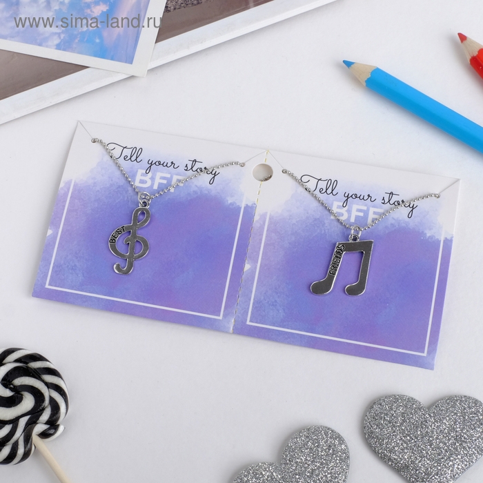 Кулоны «Неразлучники» ноты, цвет чернёное серебро, 45 см