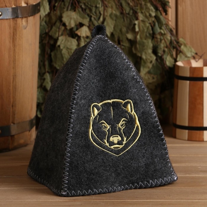 Шапка для бани серая с вышивкой "Медведь"