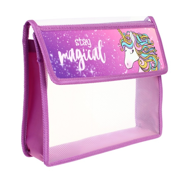 Папка для тетрадей А5 (230 х 190 х 50 мм), с клапаном на липучке, пластик/текстиль, Calligrata, "Единорог"