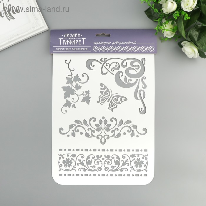 Трафарет пластик "Бабочка, узоры" 22х31 см
