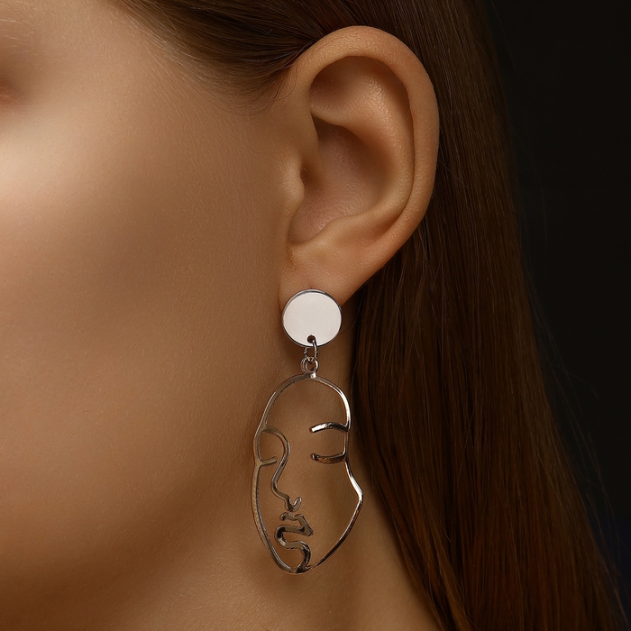 Серьги металл «Лица» раздвоение, цвет серебряно-золотой