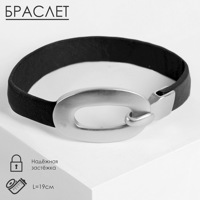 Браслет кожа «Шаман» овал, цвет чёрный в серебре, 19 см