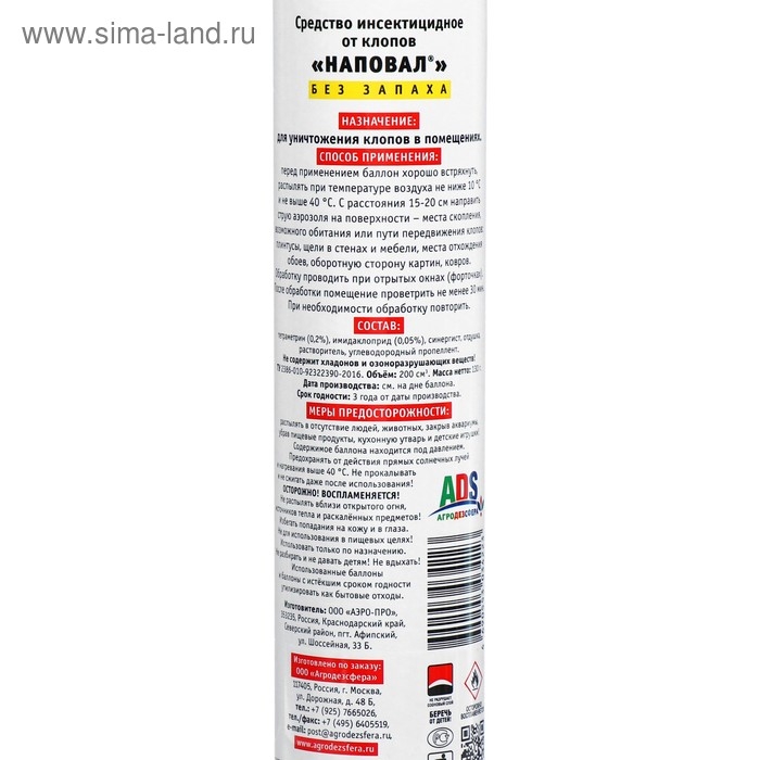 Аэрозоль от клопов "Наповал", без запаха, 200 мл