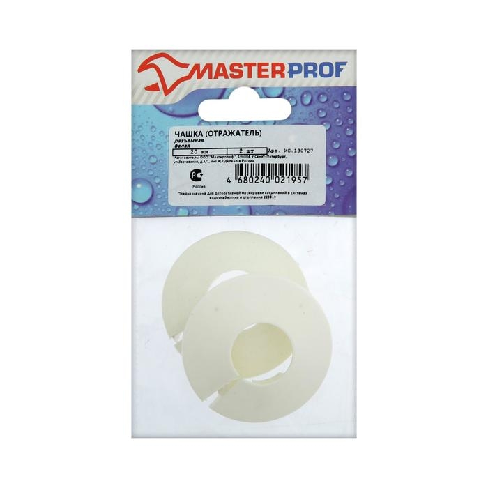 Декоративная чашка (отражатель) MasterProf используется в качестве декоративного экрана в местах подключения к водопроводу бытовых кранов, резьбовых эксцентриков сантехнических смесителей.