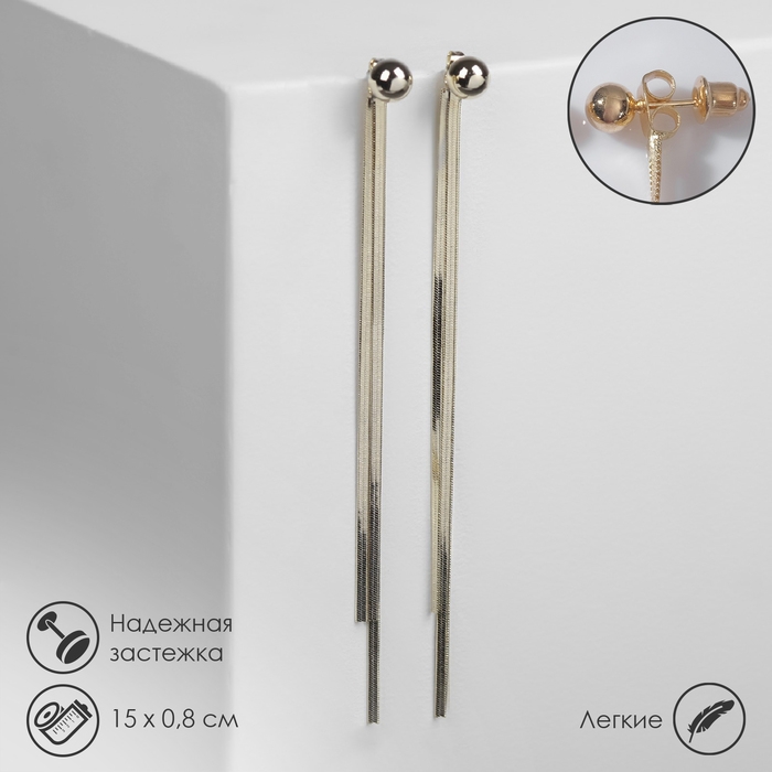 Серьги висячие «Изящество» плоские нити, цвет золото, 15 см
