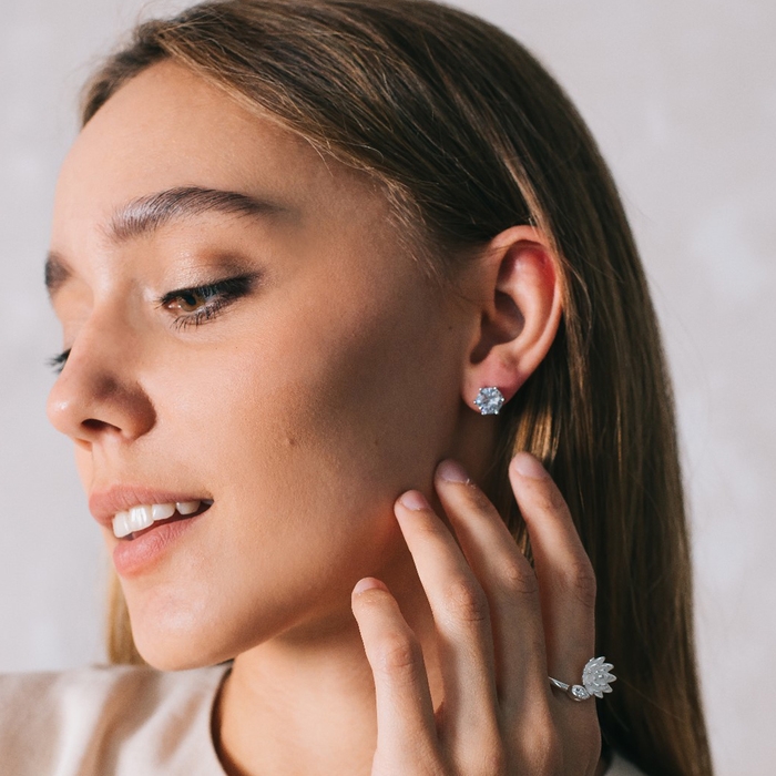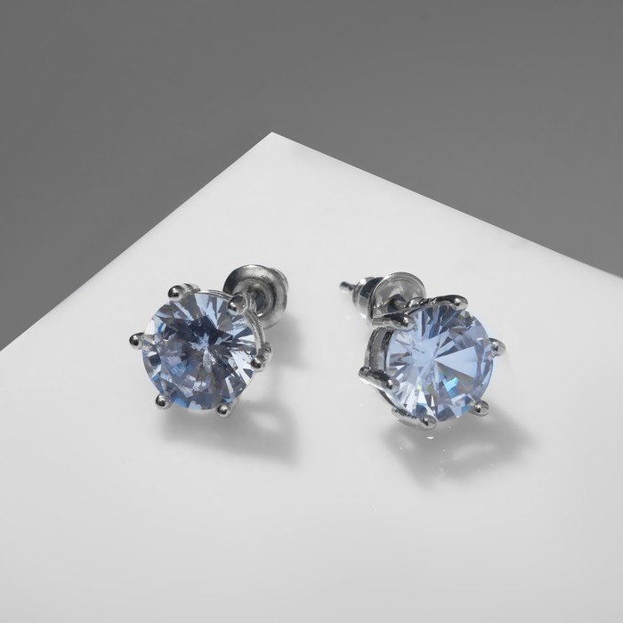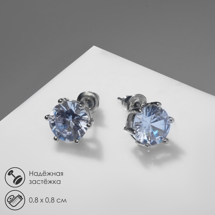 Серьги со стразами «Пусеты» круг классика, d=0,8 см, цвет белый в серебре