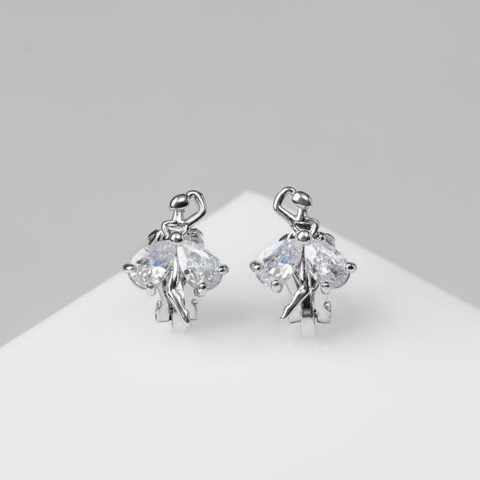 Клипсы «Лёд» классика 2 ряда, цвет белый в серебре