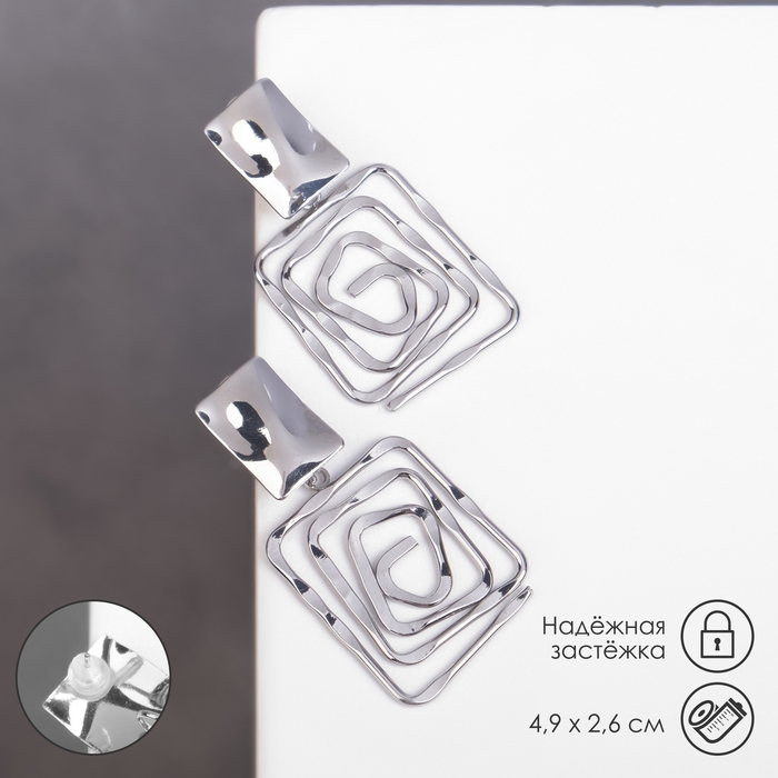 Серьги металл «Врата» два квадрата, цвет серебро