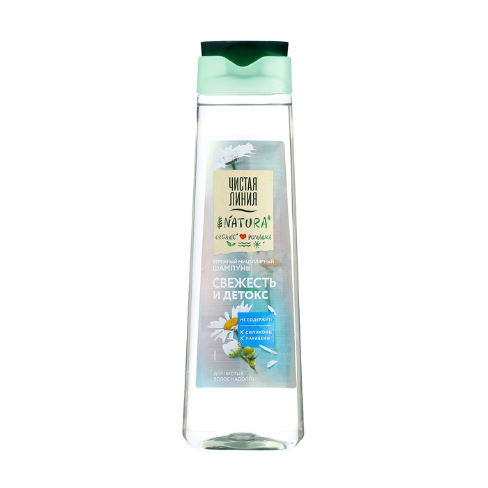 Для свежих и чистых волос надолго попробуйте очищающий мицеллярный шампунь Natura свежесть и детокс. В шампуне чистая линия Natura свежесть и детокс вся сила органической ромашки. Биологически активные вещества ромашки обладают антиоксидантными свойствами, бережно ухаживают за кожей головы, смягчают волосы и придают им здоровый блеск.