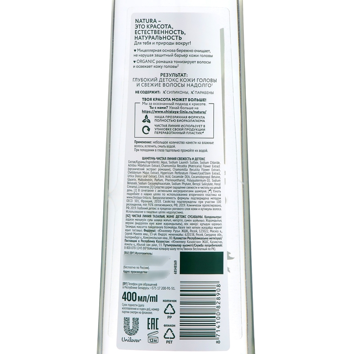 Шампунь Чистая линия «Свежесть и детокс», 400 мл