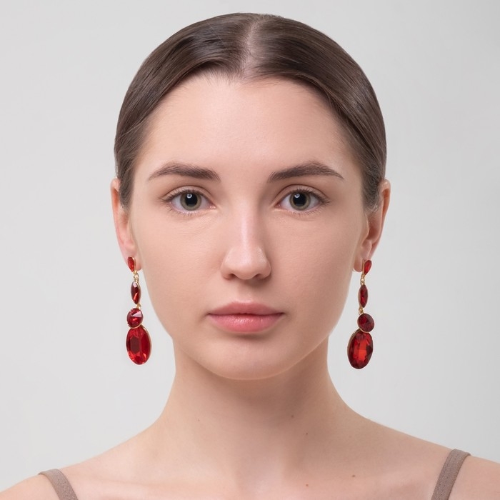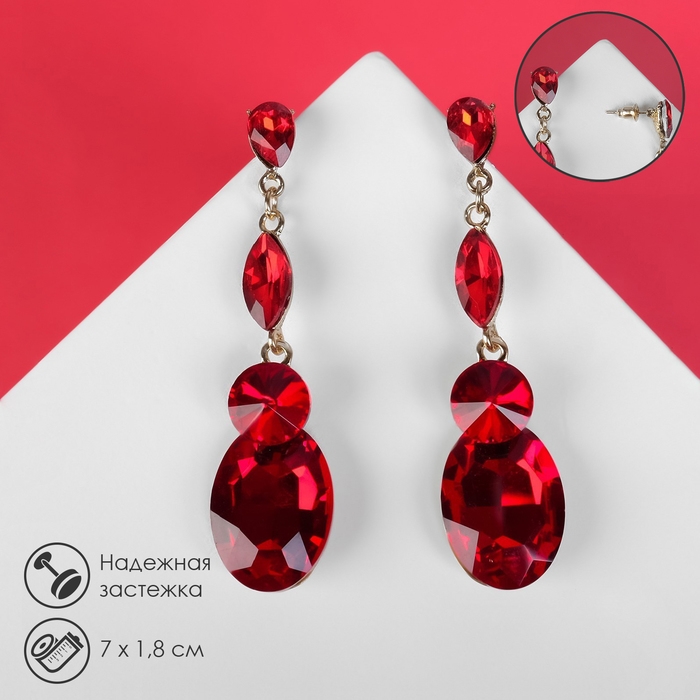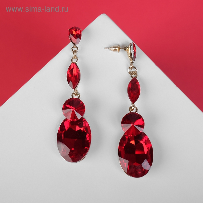 Серьги висячие со стразами «Вечеринка» дорожка из капель, цвет красный в золоте, 7 см