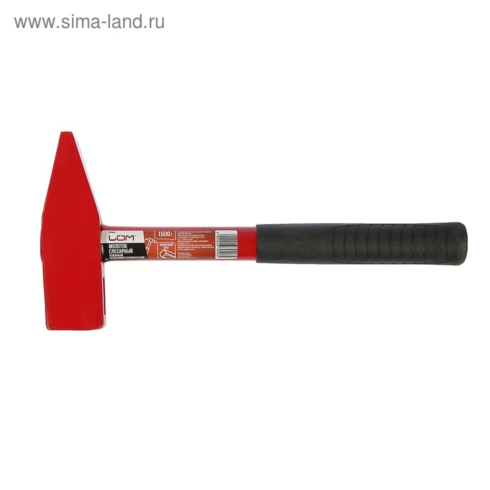 Молоток слесарный ЛОМ, квадратный боек, металлическая обрезиненная рукоятка, 1500 г
