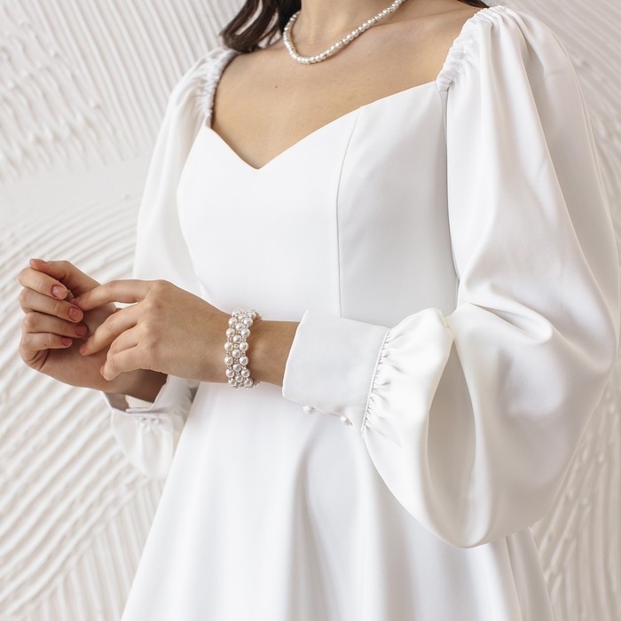 Браслет жемчуг «Невеста» бусины d=0,5, 4 ряда пружинкой, цвет молочный