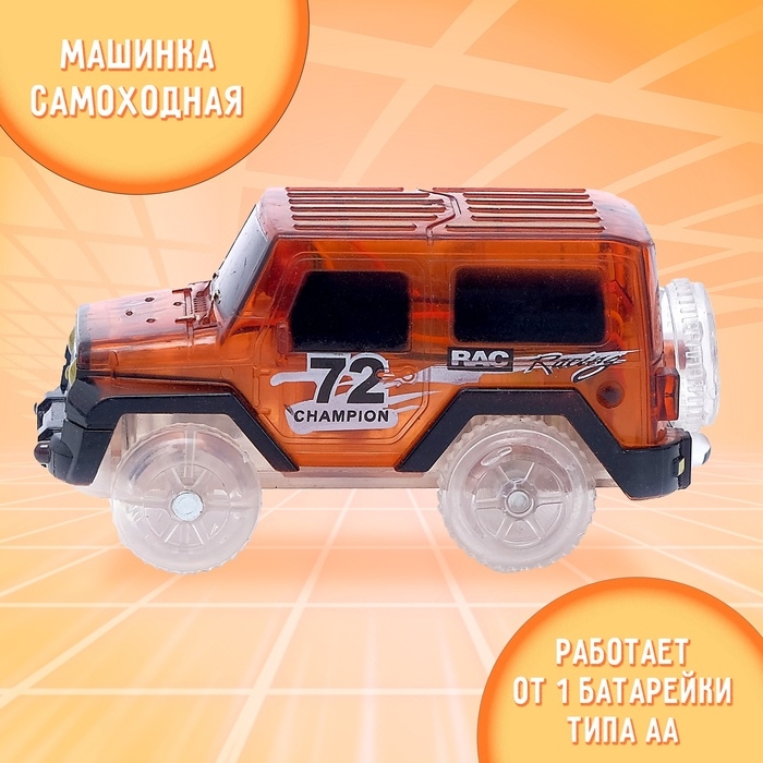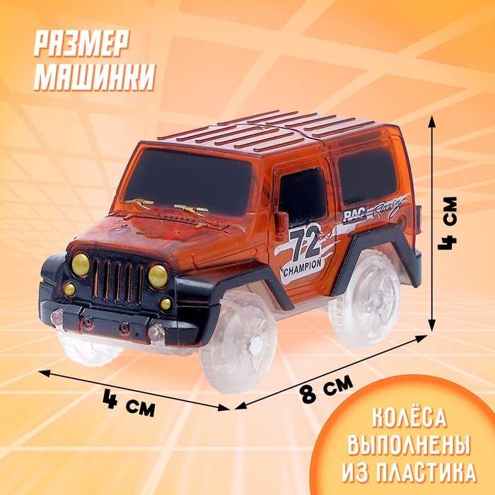 Машинка для магического трека Magic Tracks, световые эффекты, работает от батареек, цвет оранжевый