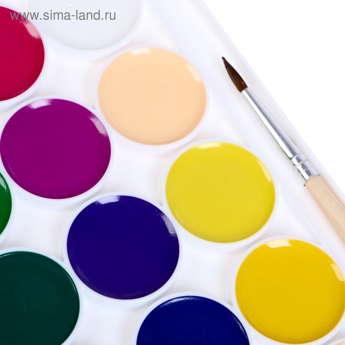 Краски акварельные, в кюветах, с кистью, 12 цветов
