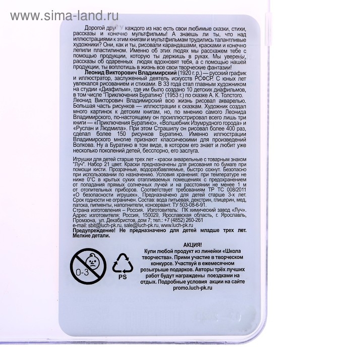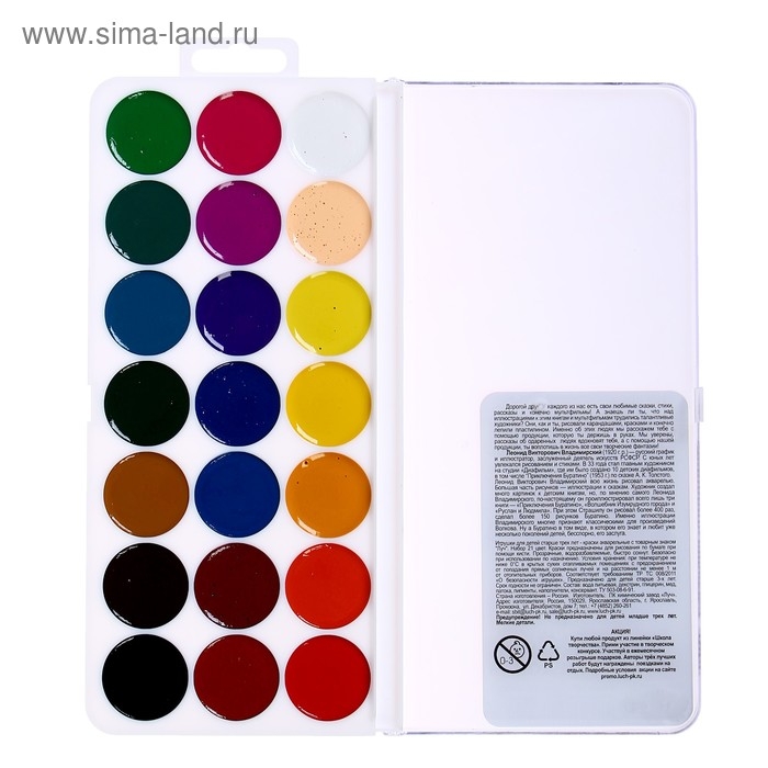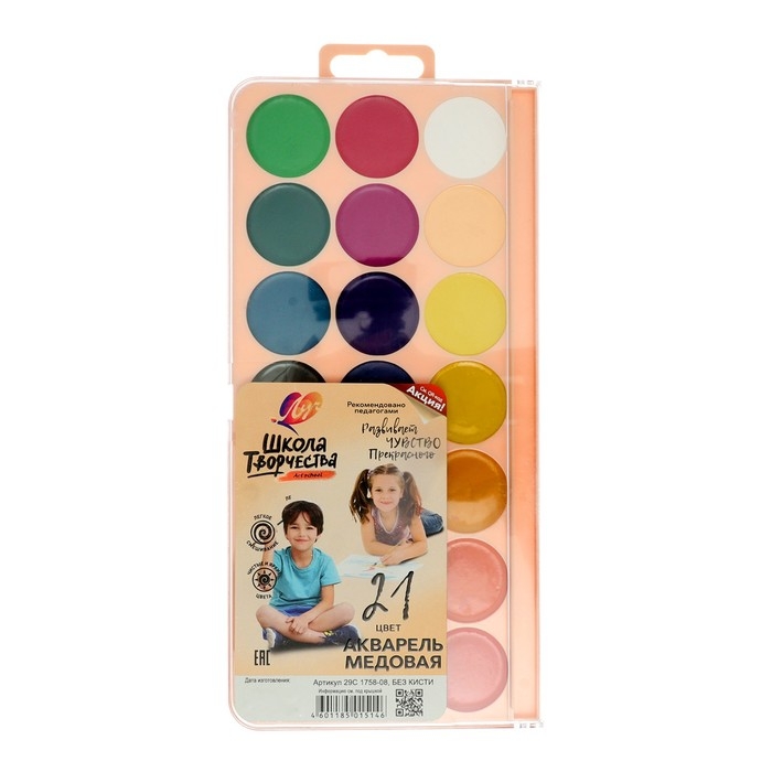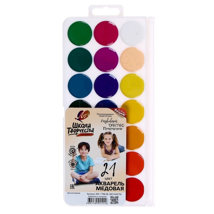 Акварель "Луч" Школа творчества, 21 цвет, без кисти