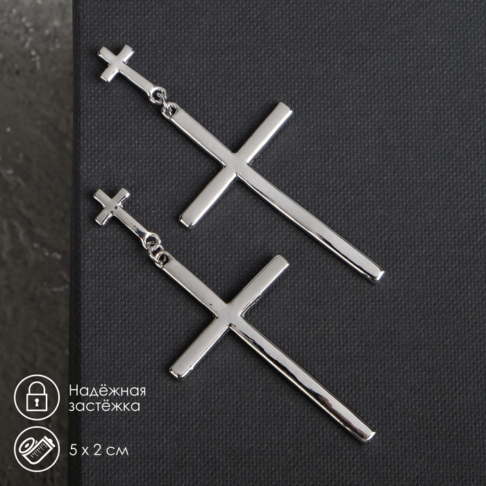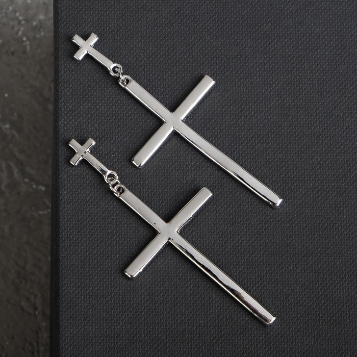 Серьги металл «Крестики» дуэт, цвет серебро