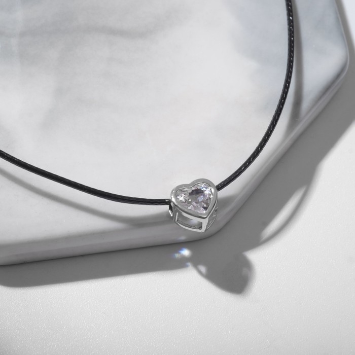 Кулон на шнурке «Чёрная ночь» сердечко в обрамлении, цвет белый в серебре на чёрном шнурке, 35 см
