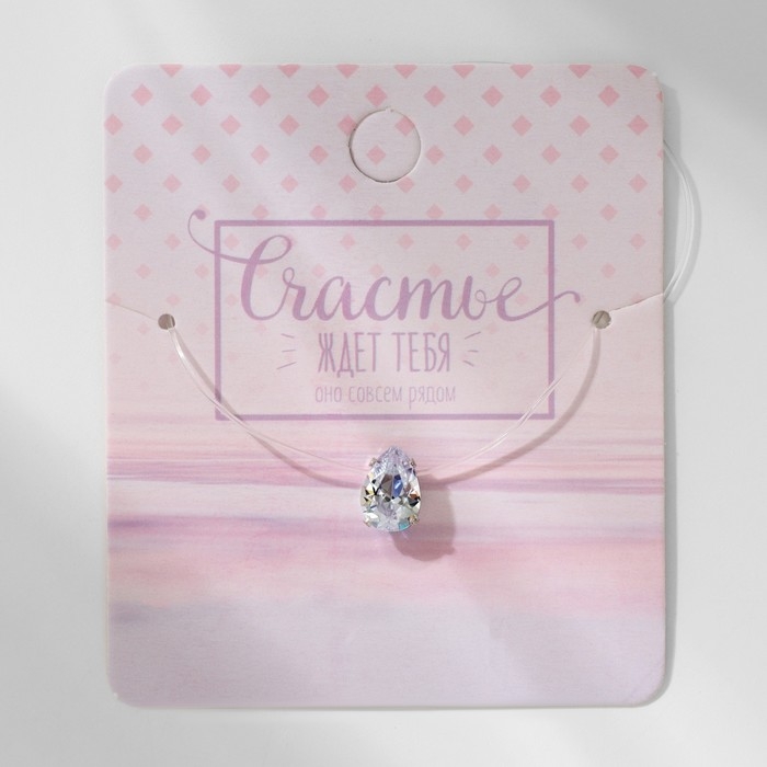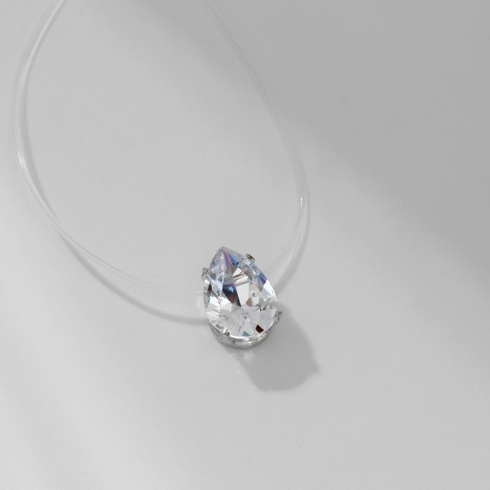 Кулон «На леске» капля в обрамлении, цвет белый в серебре, 35 см