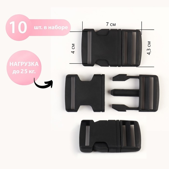 Фастекс 40 мм, нагрузка до 25 кг, 10 шт, цвет чёрный