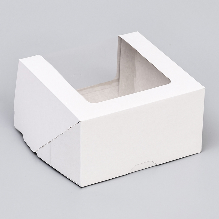 Коробка под торт, белая, с окном, 18 х 18 х 22 см