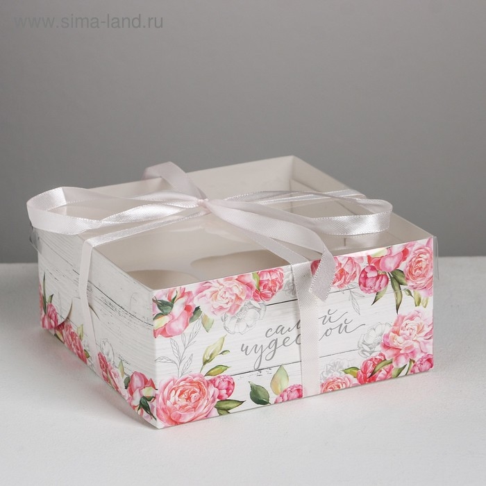 Коробка для капкейков, кондитерская упаковка, 4 ячейки «Самой чудесной», 16 х 16 х 7.5 см