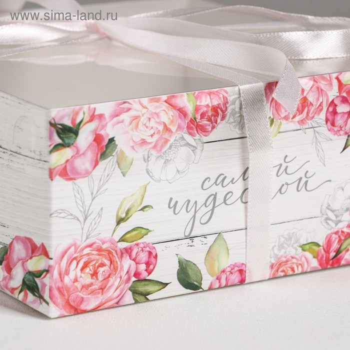 Коробка под 4 капкейка с окном , "Самой прекрасной", 16 х 16 х 10 см, кондитерская упаковка