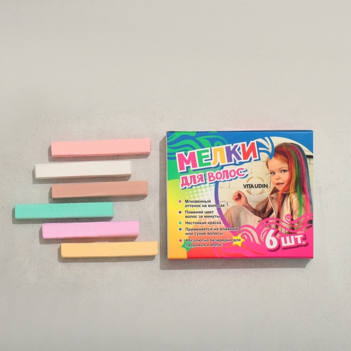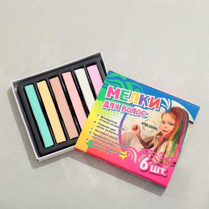 Набор мелков для волос, 6 шт. Цвета: салатовый, желтый, умбра, красный, белый, маджента
