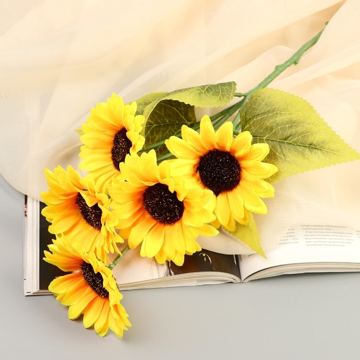 Цветы искусственные "Пять подсолнухов" 9х53 см