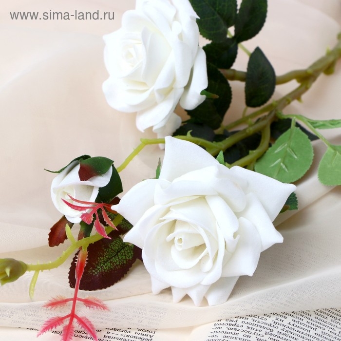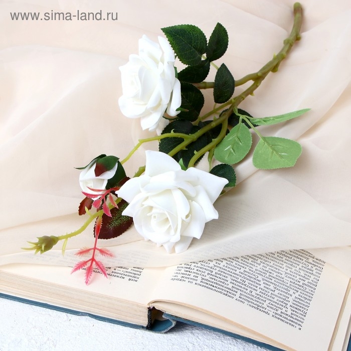 Цветы искусственные "Розы с шипами" 8х40 см, белый