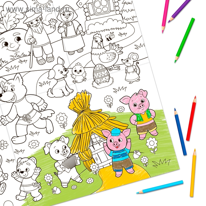 Раскраска гигант «Мы пришли из сказки» — это отличная возможность для детей весело провести время, развивая моторику и фантазию.
