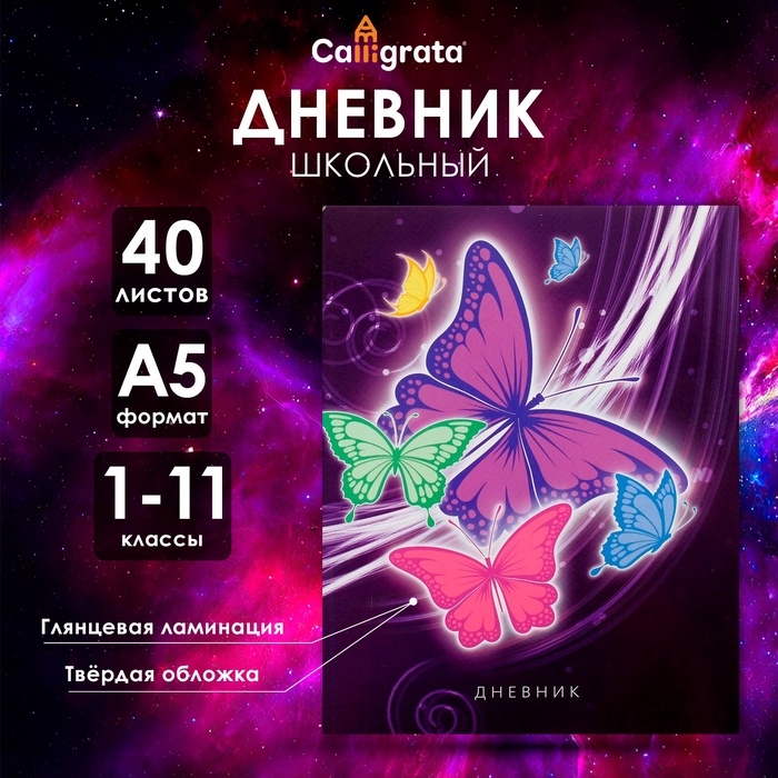 Дневник универсальный для 1-11 классов, "Бабочки. Неон 2", твердая обложка 7БЦ, глянцевая ламинация, 40 листов