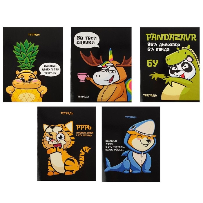 Комплект тетрадей из 5 штук, 48 листов в клетку Calligrata "Любимые питомцы", обложка мелованная бумага, блок №2, белизна 75% (серые листы)