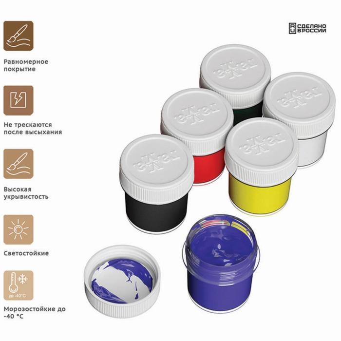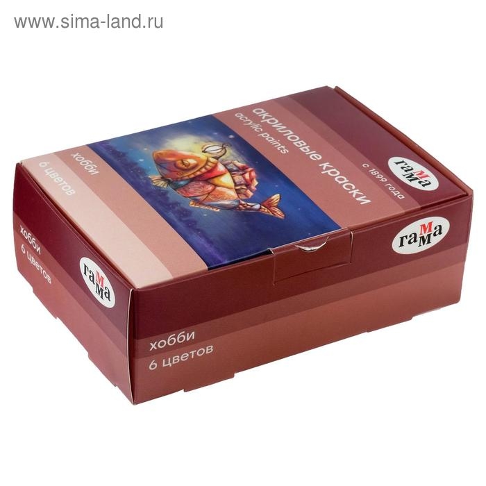 Краска акриловая, набор 6 цветов х 20 мл, Гамма "Хобби", морозостойкая, глянцевая, 3012196