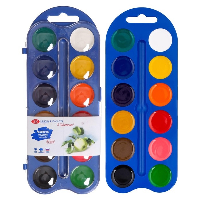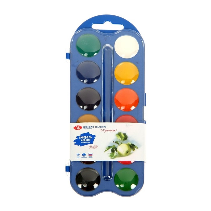 Акварель медовая ЗХК "Я - Художник!", 12 цветов, в пластиковом пенале, без кисти