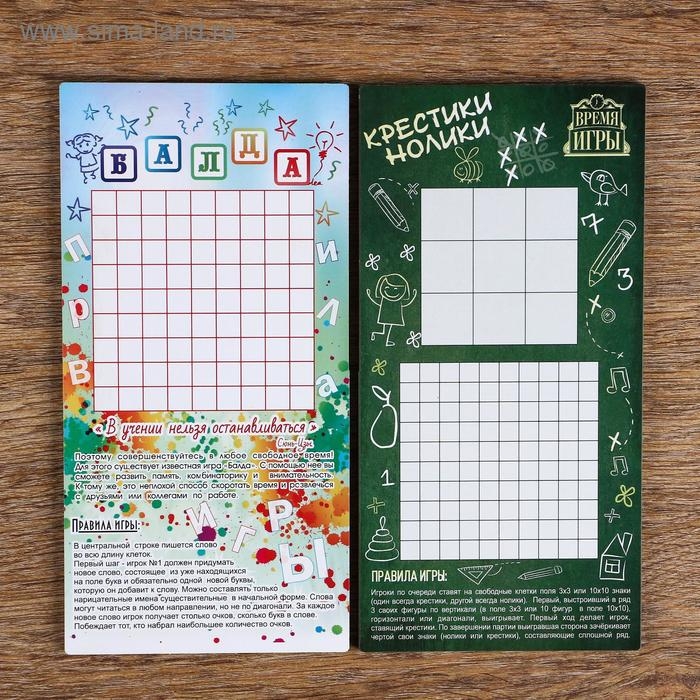 Настольная игра 2 в 1 "Балда", "Крестики-нолики" , стираемый маркер