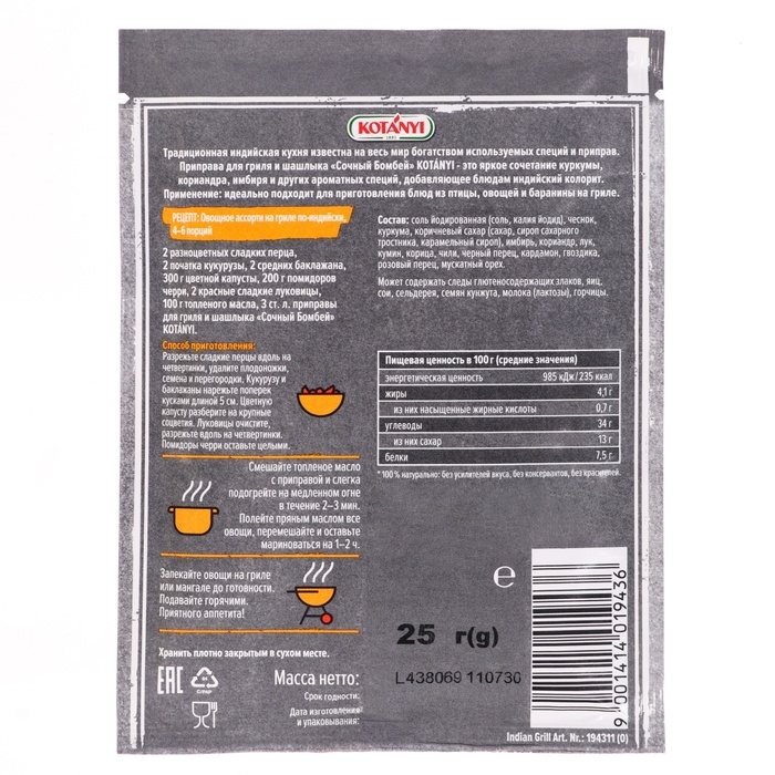 Приправа Kotanyi для гриля и шашлыка "Сочный Бомбей", 25 г