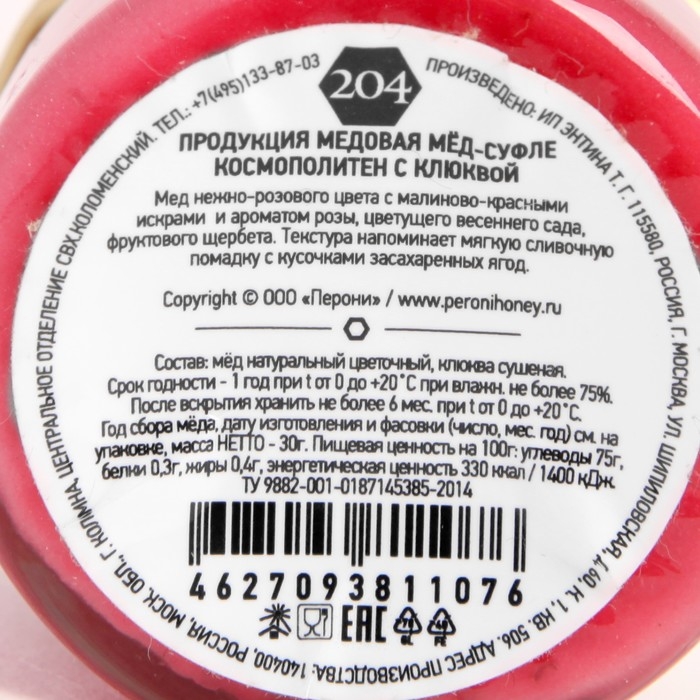 Мёд-суфле Peroni, Космополитен с клюквой, 30 г