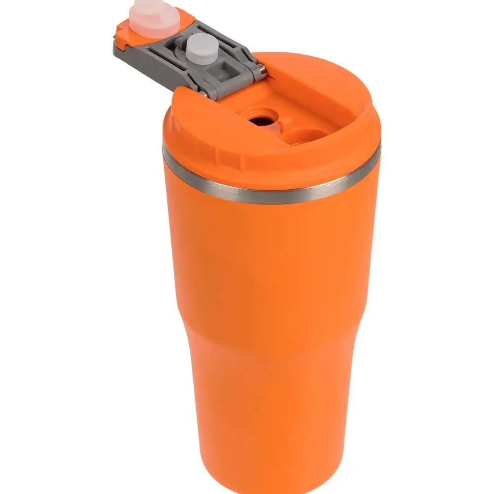 - 2 крышки в комплекте: одна на 100% герметичная с механизмом блокировки отверстия для питья, вторая — с отверстием для трубочки