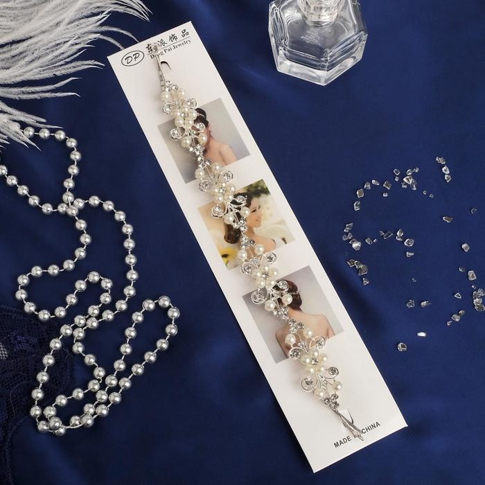 Аксессуар для волос "Никки" цветочки на веточках, 21см, серебро