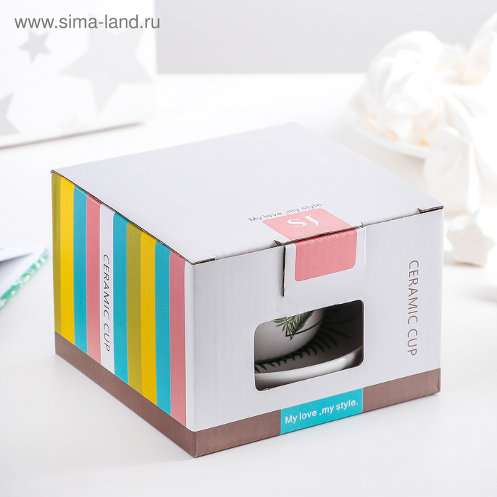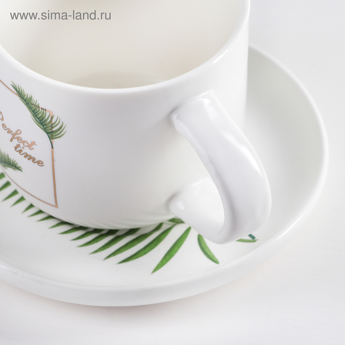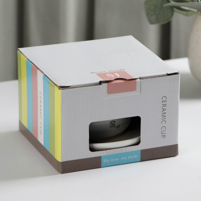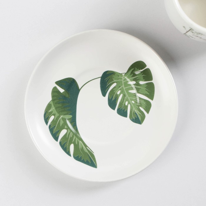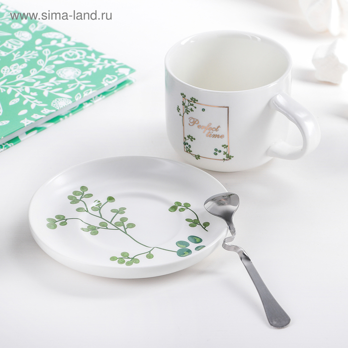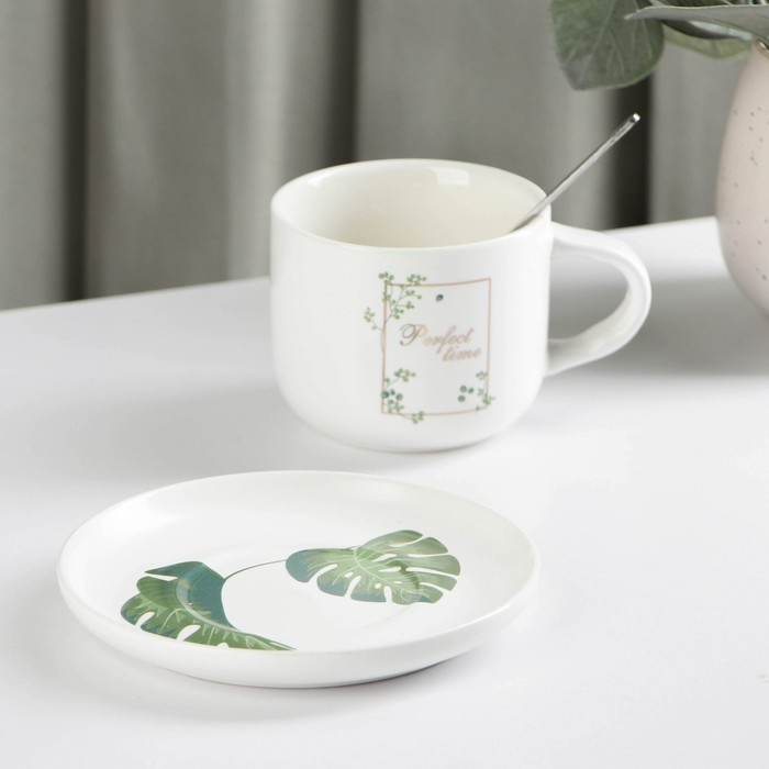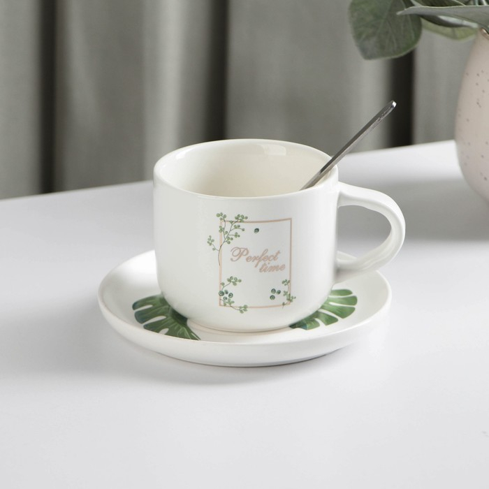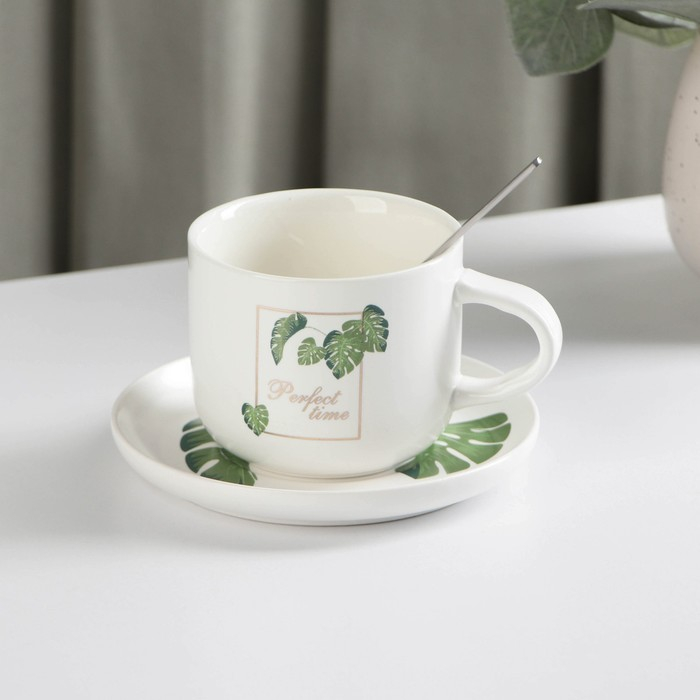 Набор керамический чайный с ложкой «Ботаника», 2 предмета: чашка 200 мл, блюдце, цвет МИКС