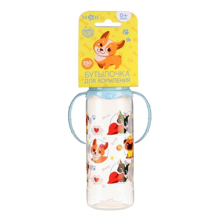 Бутылочка для кормления «ТРЕНД. Песики», классическое горло, 250 мл., от 3 мес., цилиндр, с ручками, цвет голубой