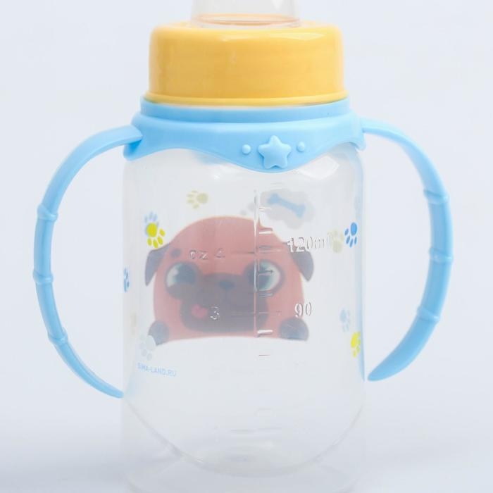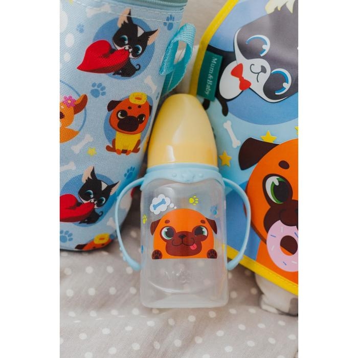Бутылочка для кормления «ТРЕНД. Песики», классическое горло, 150 мл., от 3 мес., цилиндр, с ручками, цвет голубой